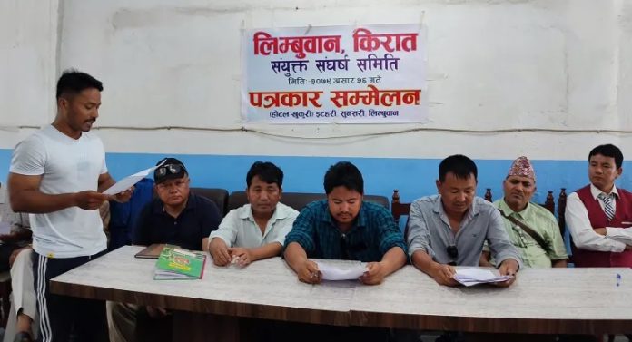 लिम्बुवान किरात संयुक्त संघर्ष समितिले हिजो इटहरीमा पत्रकार सम्मेलन गरी चरणबद्ध आन्दोलनका कार्यक्रम सार्वजनिक गरेको छ ।