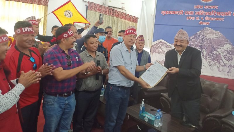 र्याली विराटनगर पुगेपछि यायोक्खा अध्यक्ष दिवस राईले मुख्यमन्त्री राजेन्द्र राईलाई ज्ञापनपत्र बुझाए ।