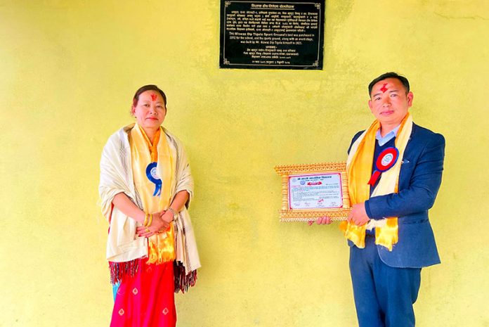 विद्यालयको तर्फबाट दाता दम्पतिलाई दोसल्ला ओढाइ सम्मान गरे भने तिगेलाले आफूलाई पढाउने गुरु भोगेन्द्रराज अधिकारी र रेवती सुवेदीलाई नेपाली ढाका टोपी लगाइदिएर सम्मान ब्यक्त गरे ।