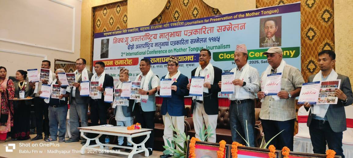 सातबुँदे घोषणापत्र जारी गर्दै दोस्रो अन्तर्राष्ट्रिय मातृभाषा पत्रकारिता सम्मेलन ११४५ सम्पन्न भएकाे छ ।