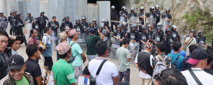ताप्लेजुङको फक्ताङ्लुङ गाउँपालिकास्थित माथिल्लो तमोर जलविद्युत आयोजनाको निर्माणस्थलमा शुक्रबार स्थानीयले विरोध प्रदर्शन गरेका छन्।