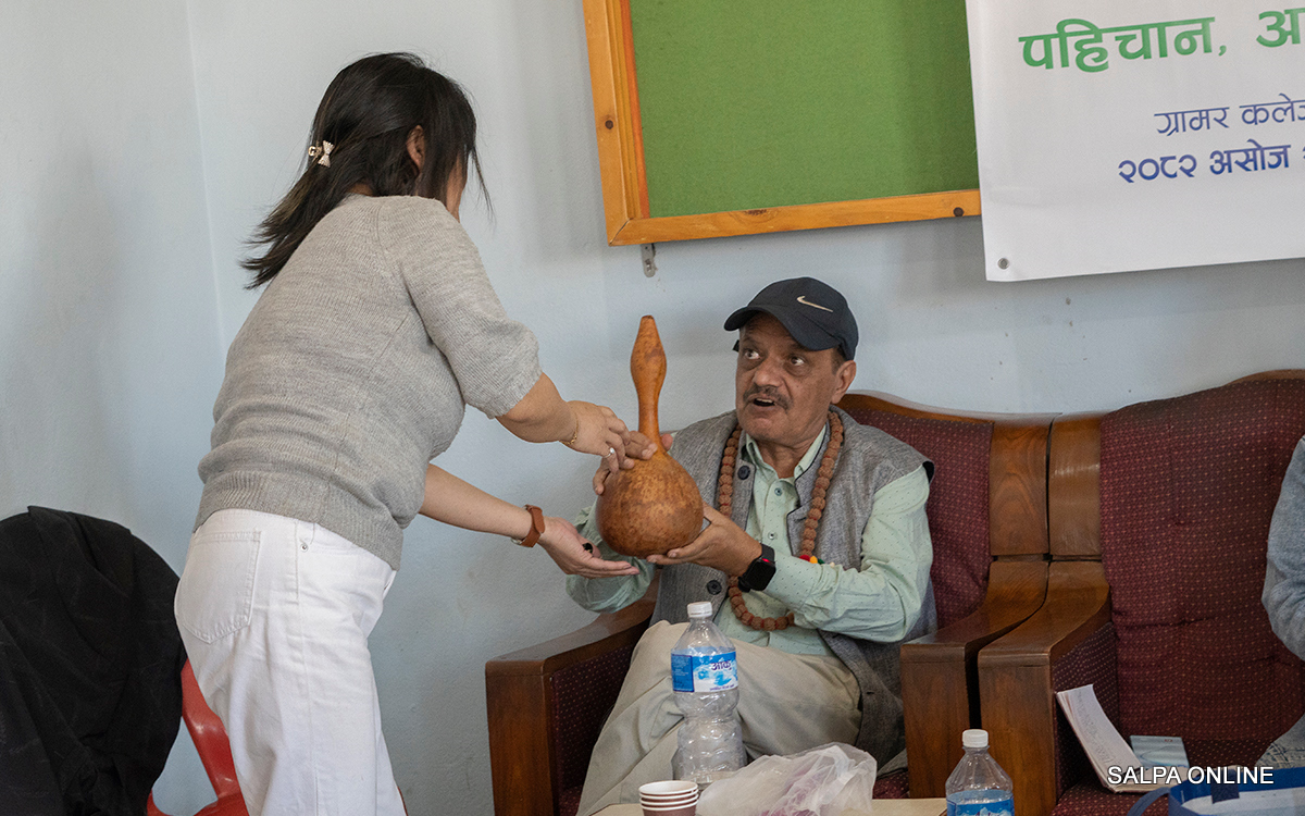 सुप्तुलुङ (तिनचुला)मा आगो बालेर उद्घाटन गरिएको कार्यक्रममा चिन्डोभित्र कोदोको रक्सी राखेर सबै सहभागीलाई पालैपालो सत्कारका रूपमा पिउन दिइँदै थियो।