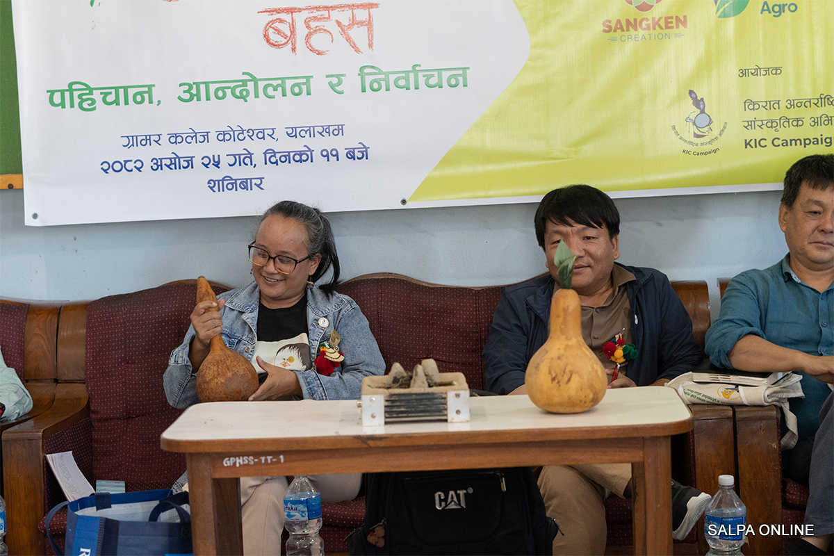 किरात अन्तर्राष्ट्रिय सांस्कृतिक अभियानको आयोजनामा शनिबार काठमाडौंको कोटेश्वरस्थित ग्रामर कलेजमा ‘पहिचान आन्दोलन र निर्वाचन’ विषयक सुप्तुलुङ बहस चलिरहेको थियो।