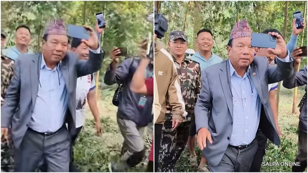 मन्त्री पुन श्रमदान स्थलमा पुग्दा भिडियो खिच्नेहरूको लर्को लागेको थियो।