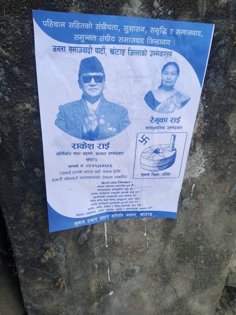 जसपाले गत आइतबार हलेसी बजार आसपास करिब ४०० वटा चुनावी पोस्टर टाँसेको थियो।
