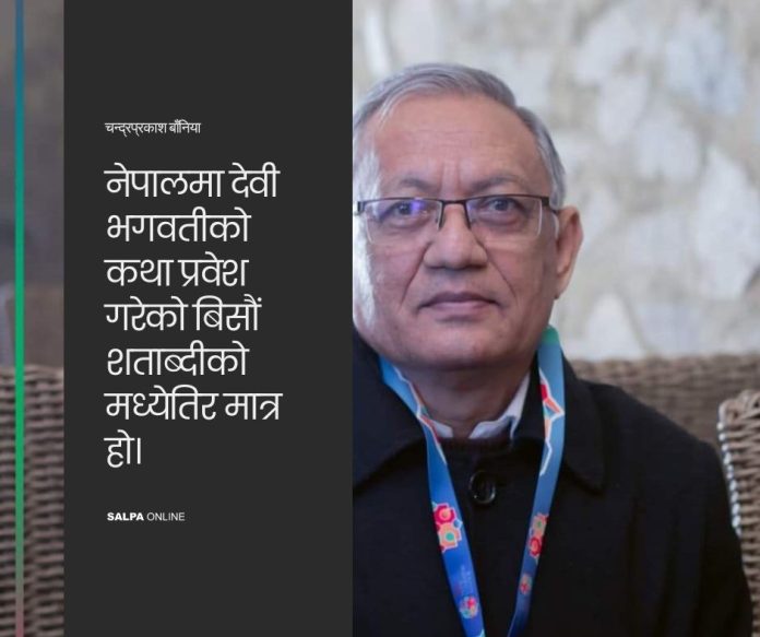 अर्थात्, नेपालमा देवी भगवतीको कथा प्रवेश गरेको बिसौं शताब्दीको मध्येतिर मात्र हो।