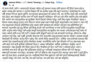 त्यस्तै, खस–आर्य पुरुष समूहका १ नम्बर उम्मेदवार जीवन विष्टले पनि आफ्नो नाम फिर्ता लिएका छन्। उनले ‘पार्टीभित्र लोभीहरू छैनन्’ भन्ने सन्देश दिन आफूले त्याग गरेको बताएका छन्।